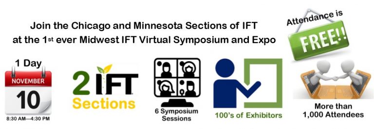 Chicago and Minnesota Sections of IFT have joined together to launch the Midwest IFT Virtual Symposium and Expo on November 10, 2020 replacing the CSIFT November 4, 2020 in-person event and bringing exhibitors from all parts of North America to your desktop.
