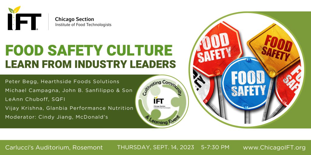 Join us at Carlucci’s in Rosemont and listen to the stories from top food industry leaders who have committed years to effectively establish food safety culture in their organizations. These tips and lessons will help you to understand the maturity of your food safety culture and how to sustain and further strengthen it.